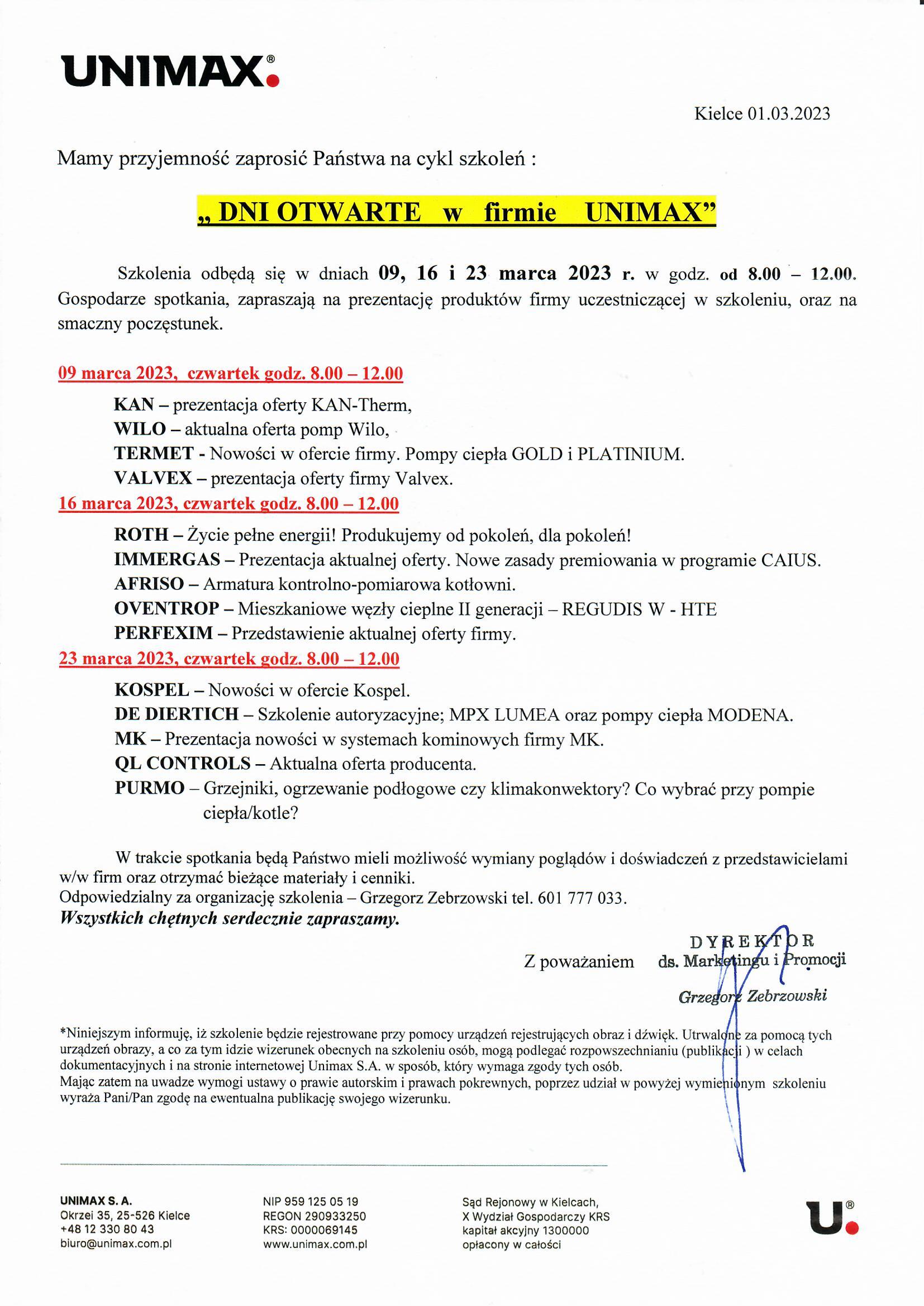 Dni otwarte w hurtowni Unimax w Kielcach (9, 16 i 23 marca)