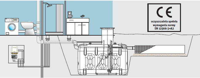 Zestaw oczyszczalni został skontrolowany w notyfikowanym laboratorium na zgodność z normą zharmonizowaną EN 12566-3+A2 z oznakowaniem CE w zakresie sprawności oczyszczania, wodoszczelności, stabilności oraz wytrzymałości.