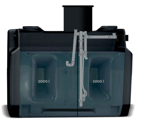 Ścieki z gospodarstwa domowego doprowadzane są grawitacyjnie do osadnika wstępnego (2000 l) – pierwsza komora zbiornika.