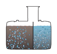 Tutaj rozpoczyna się już wstępne biologiczne oczyszczanie ścieków, jak również proces denitryfikacji i zatrzymania grubych zawiesin. Związki organiczne ulegają rozkładowi przy udziale tlenu i dzięki obecności mikroorganizmów zawartych w osadzie czynnym. Napowietrzacz rurowy umieszczony na dnie komory dostarcza znajdujący się w powietrzu tlen niezbędny do rozkładu składników ścieków. Napowietrzanie odbywa się w sposób przerywany, tak aby odpowiednia ilość powietrza została dostarczona przy niewielkim nakładzie energii. W instalacji powstaje atmosfera aerobowa. Napowietrzanie powoduje jednocześnie dobre przemieszanie w obu komorach całej instalacji.