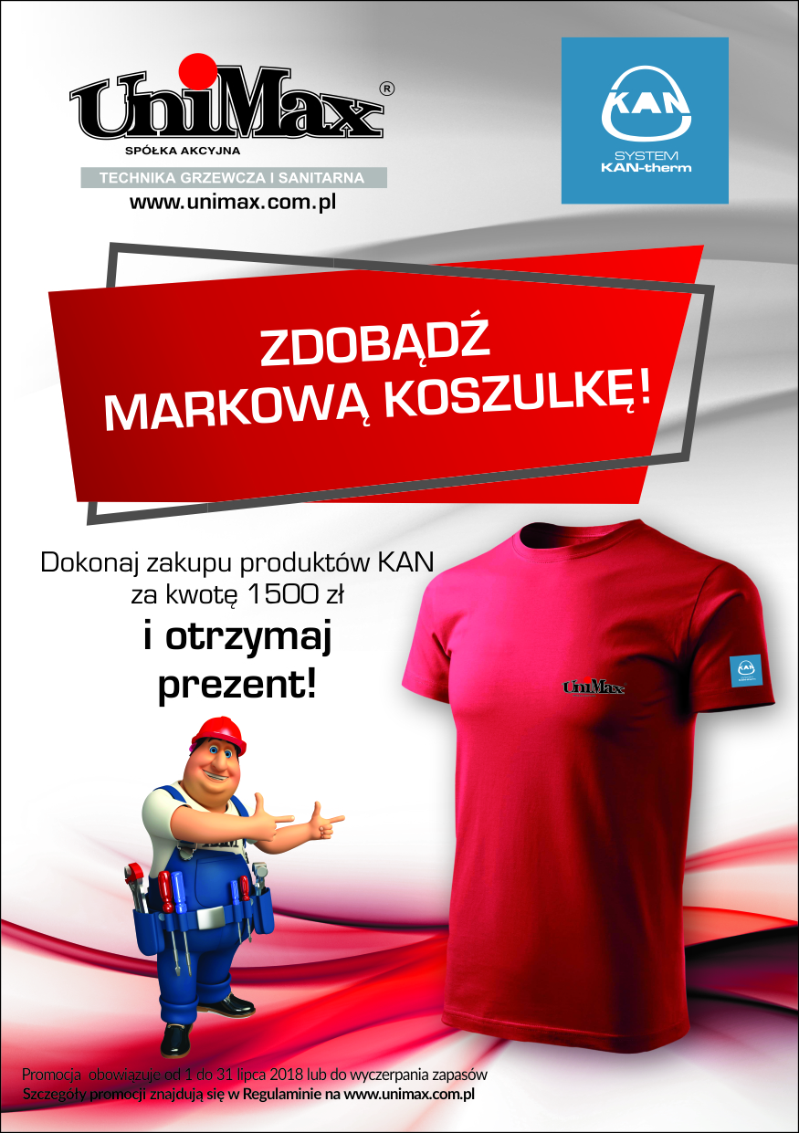 Za zrealizowany obrót na produktach firmy KAN o wartości 1500 zł netto do zgarnięcia markowa koszulka z logo UNIMAX i KAN!